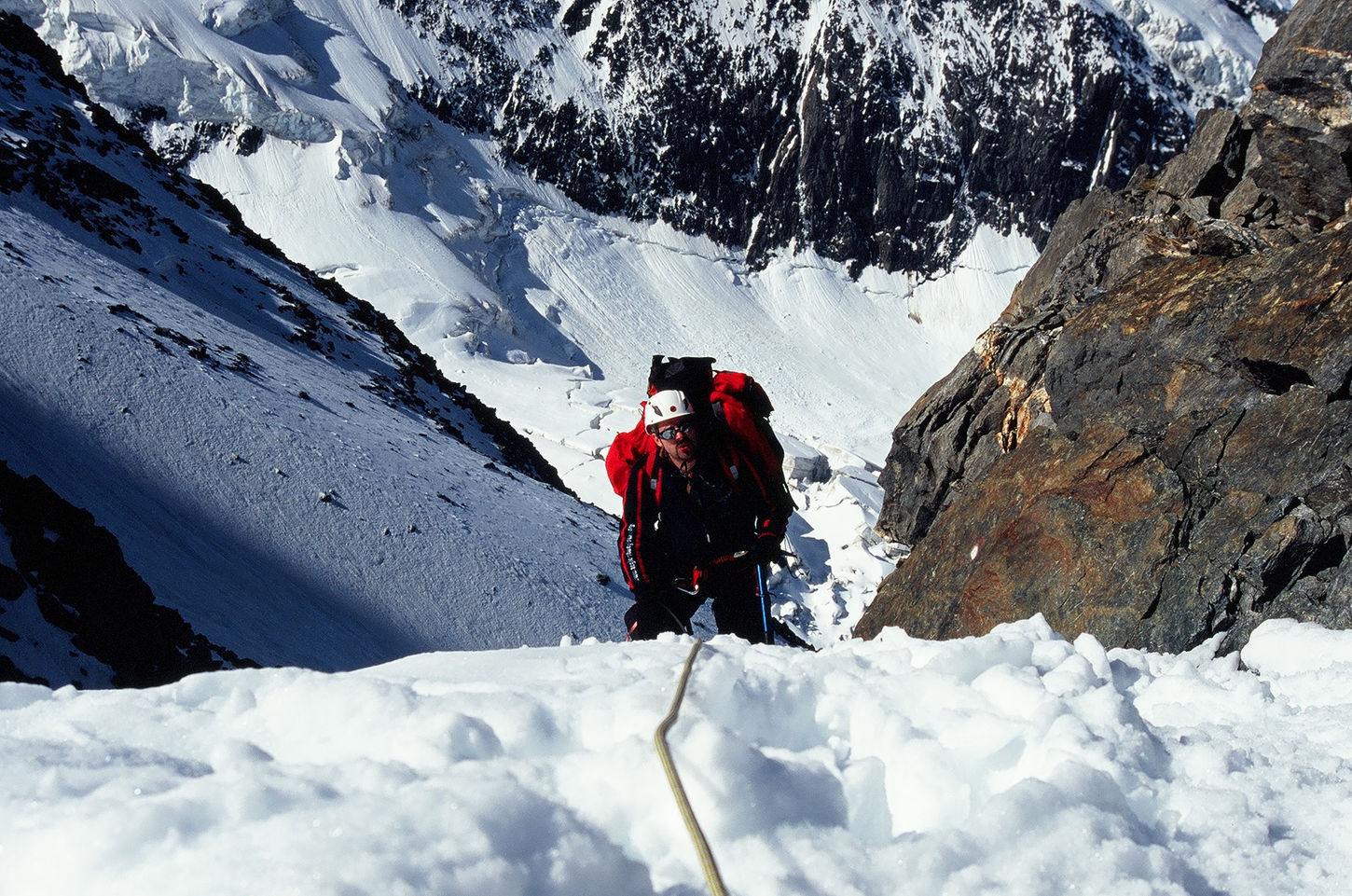 Kolejny dzień wyprawy był najbardziej niebezpieczny i trudny technicznie. Podejście, choć krótkie, rozpoczynało się od przekroczenia żlebu zagrożonego spadającymi kamieniami ze słynnego Wielkiego Kuluaru, a następnie prowadziło bardzo stromo nachylonym kolejnym kuluarem o średniej ekspozycji 70 stopni. Całą drogę wspinaliśmy się związani liną asekuracyjną, w trudniejszych momentach budując stanowiska bądź wpinając się w stalowe liny poręczowe. Mino, iż różnica wysokości, jaką pokonywaliśmy wynosiła zaledwie 700 metrów dotarcie do schroniska Refuge de l'Aig du Gouter, znajdującego się 3817 metrów nad poziomem morza zajęło nam większość dnia. Zmęczeni wspinaczką i mocnymi wrażeniami rozpoczęliśmy regenerację sił i przygotowania przed mającym nastąpić następnego dnia atakiem na szczyt Mont Blanc.